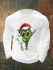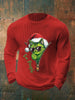 Men's Funny Christmas Grinch Cat Print Casual Waffle Long Sleeve Top