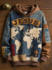 Men's Retro Casual Faith Cross Art Print Oversized Drop-Shoulder Pockets Hoodie