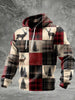 Men's Vintage Christmas Patchwork Printed Checkered Cotton Hoodie