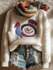 Women's Christmas Art Printed Flannel Sweatshirt(No Scarf)