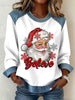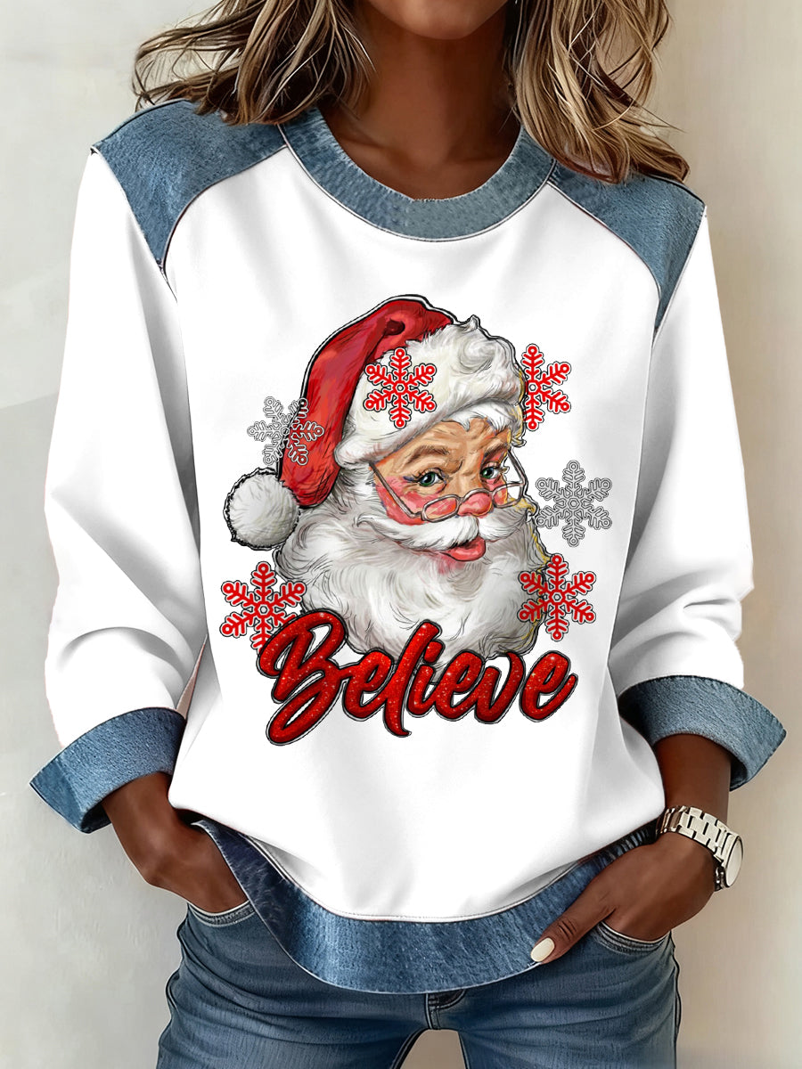 Women's Christmas Believe Santa Claus Print Casual Denim Patchwork Top