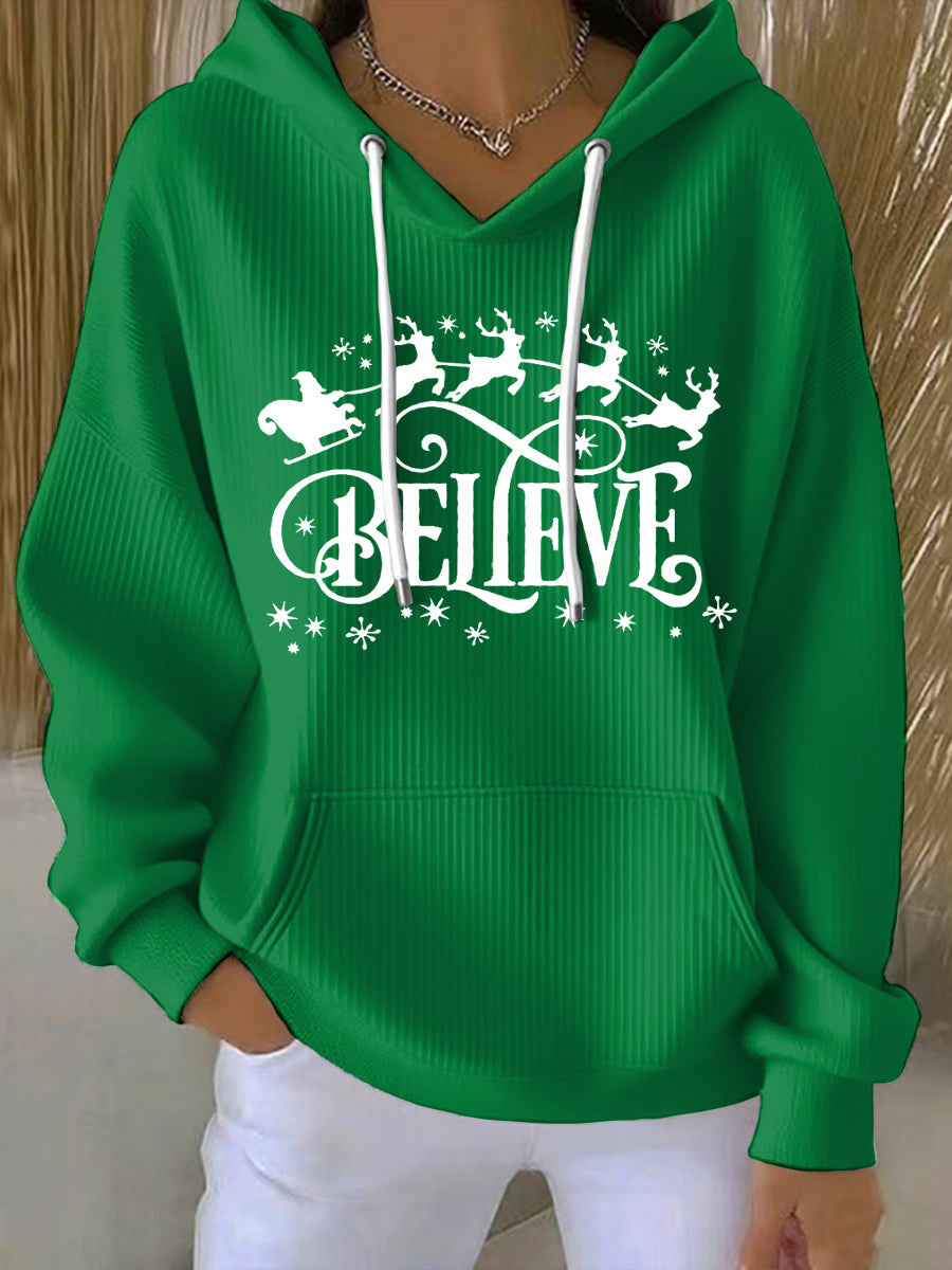 Women's Christmas Believe Snowflake Print Casual Hoodie