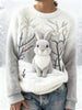 Women's Cute Bunny Print Casual Flannel Sweatshirt