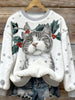 Women's Cute Christmas Cat Art Flannel Hoodie
