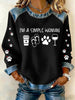 Women's Cute Dog Paws Printed Denim Patchwork Top