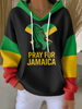 Women's Retro Pray For Jamaica Jamaica Strong Cross Reggae Red, Green, And Gold Print Hoodie