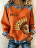 Women's Thanksgiving Printed Denim Patchwork Waffle Top