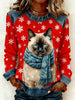 Women's Vintage Christmas Cat Denim Patchwork Sweatshirt